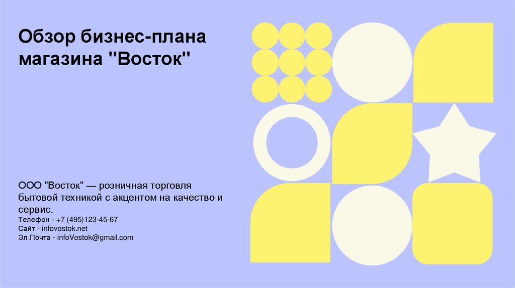 Обзор бизнес-планамагазина "Восток"