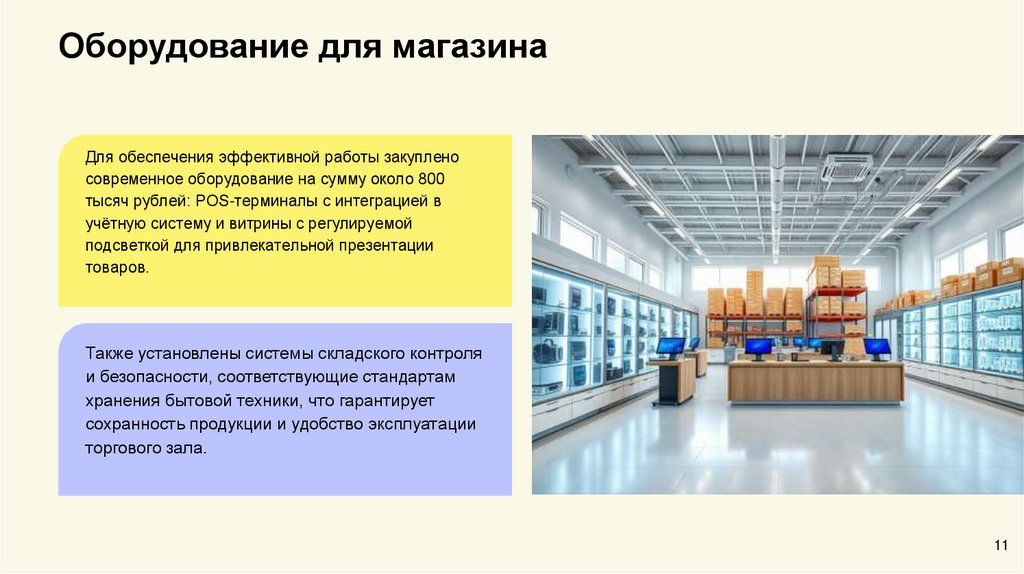 Оборудование для магазинаДля обеспечения эффективной работы закуплено
