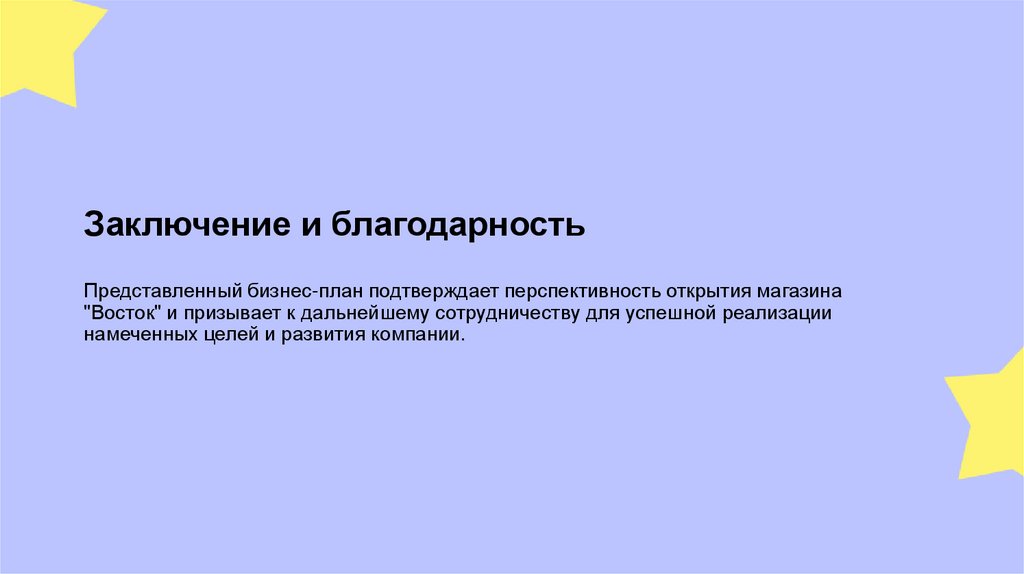 Заключение и благодарностьПредставленный бизнес-план подтверждает перспективность открытия магазина