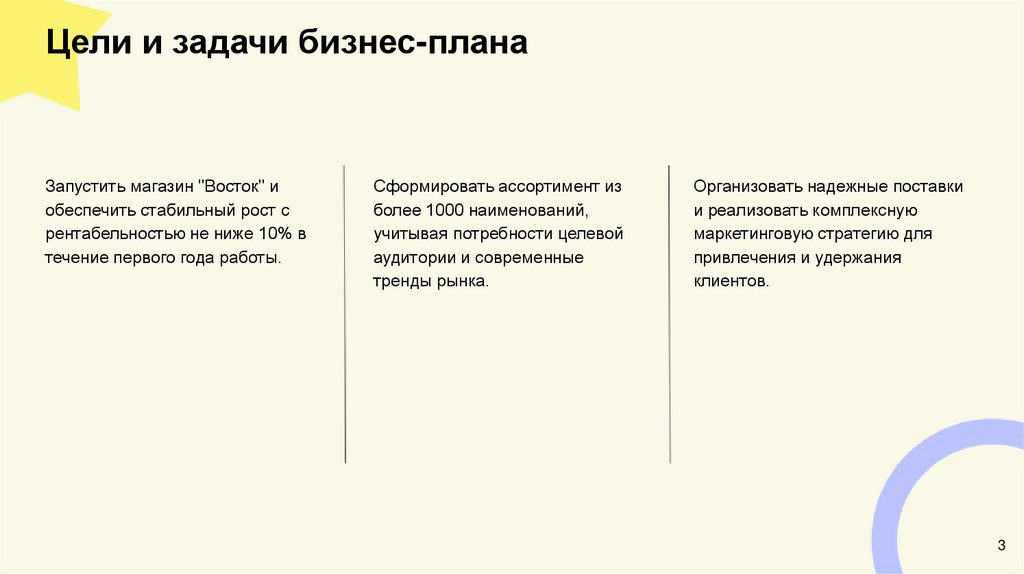 Цели и задачи бизнес-планаЗапустить магазин "Восток" и