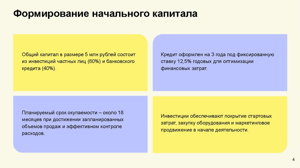 Формирование начального капиталаОбщий капитал в размере 5 млн рублей состоит