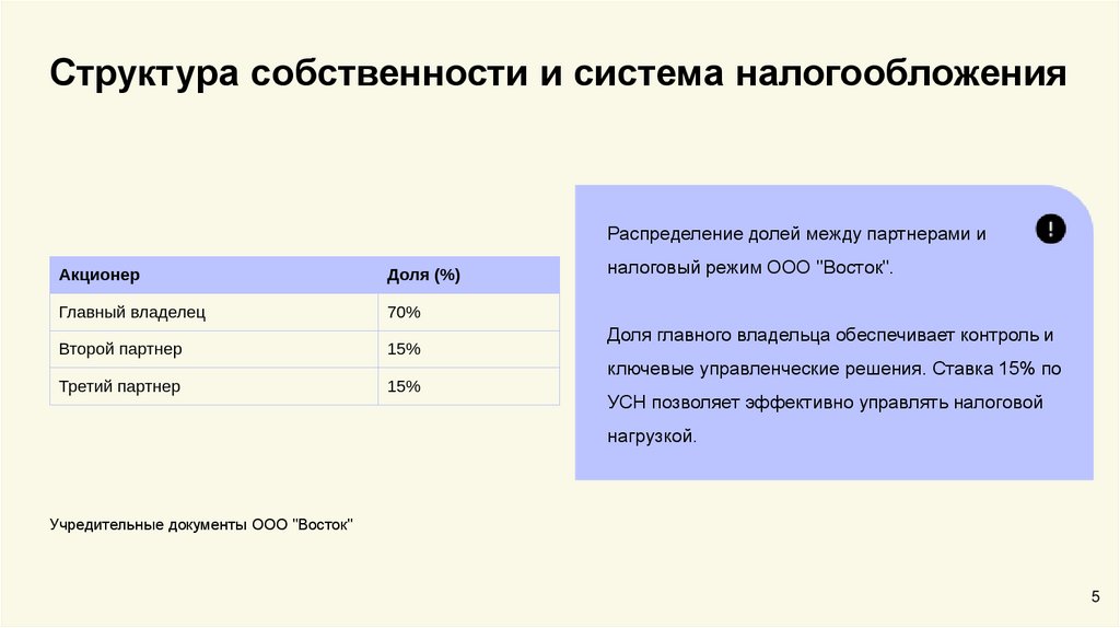 Структура собственности и система налогообложенияРаспределение долей между партнерами и