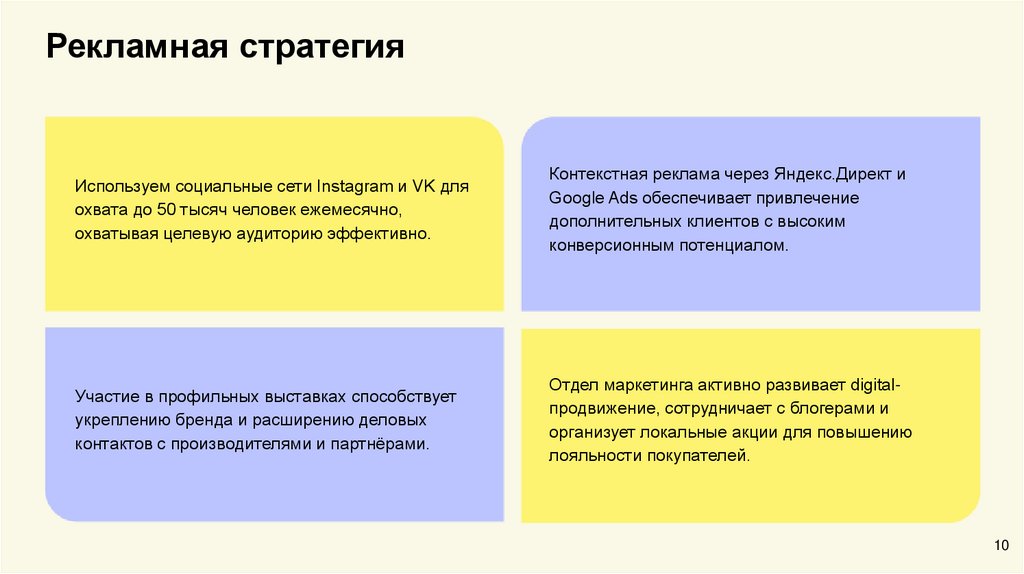 Отдел маркетинга активно развивает digitalпродвижение, сотрудничает с блогерами и