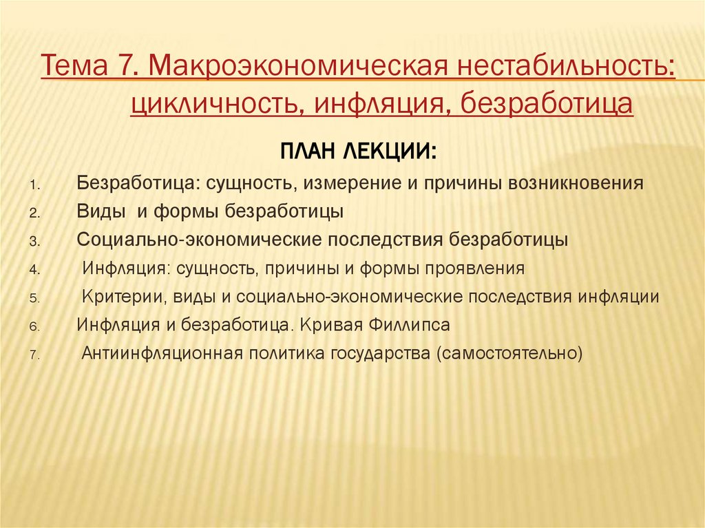 Тема 7. Макроэкономическая нестабильность:цикличность, инфляция, безработица
