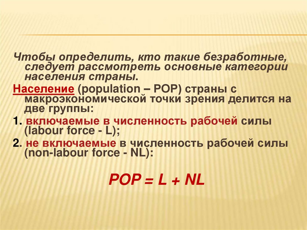 Чтобы определить, кто такие безработные,следует рассмотреть основные категории