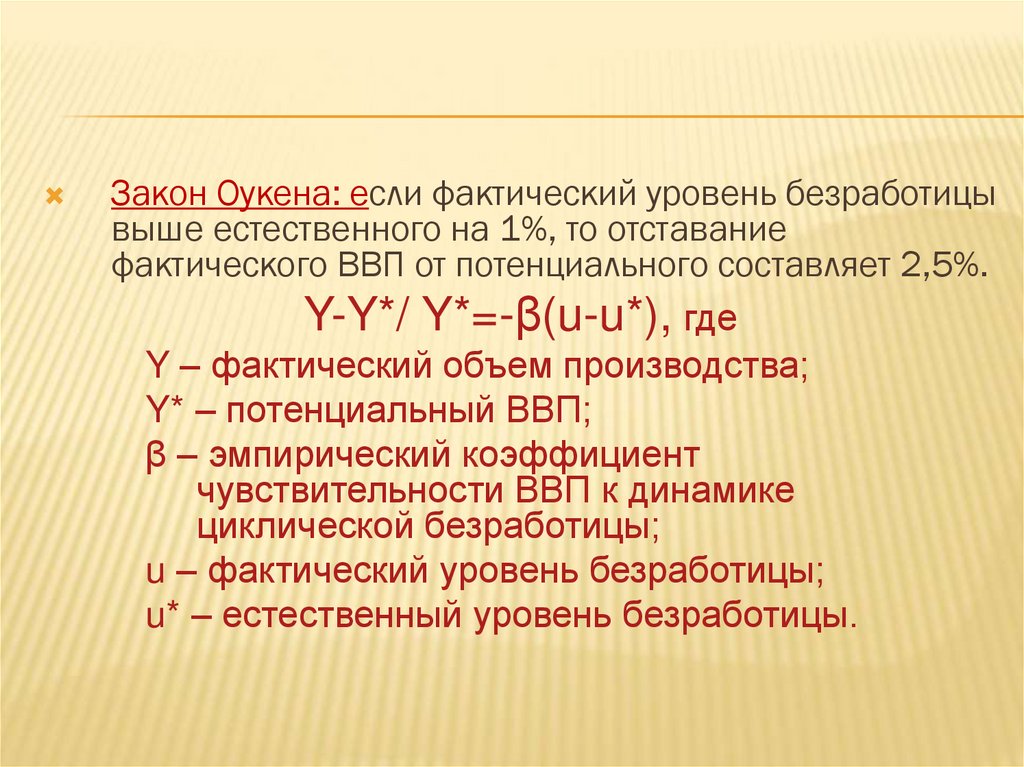 1.Уровень безработицы (rate of unemployment - u)показатель, представляющий собой отношение
