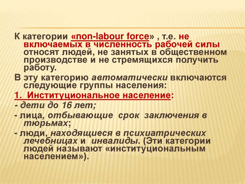 К категории «non-labour force» , т.е. невключаемых в численность рабочей силы