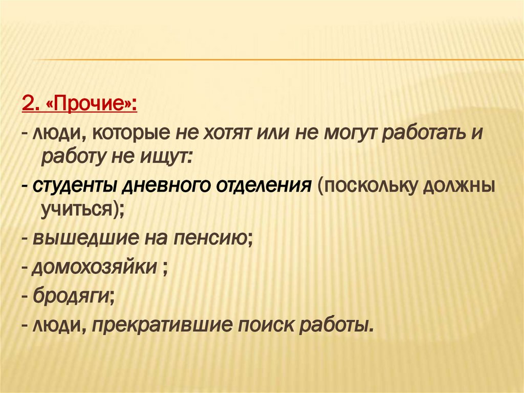 2. «Прочие»:- люди, которые не хотят или не могут работать и