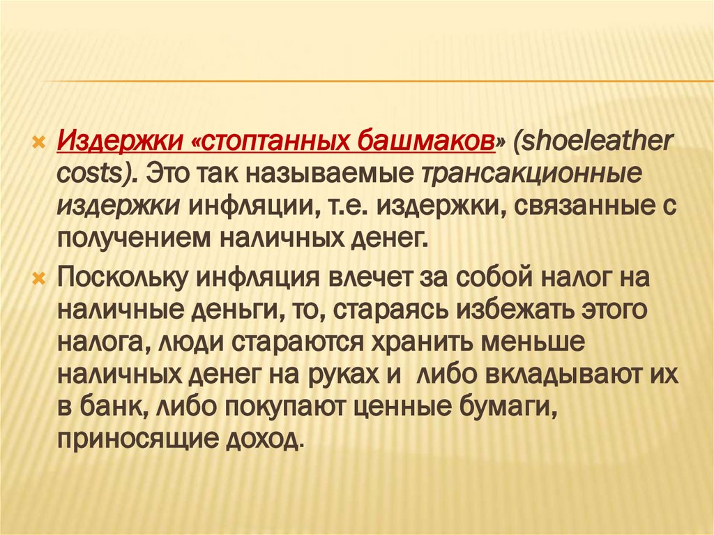Издержки «стоптанных башмаков» (shoeleathercosts). Это так называемые трансакционные