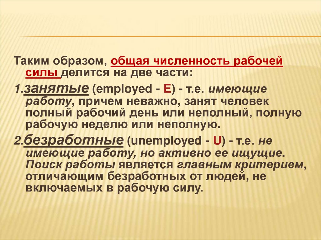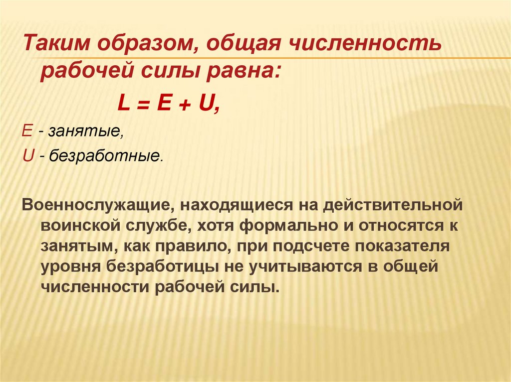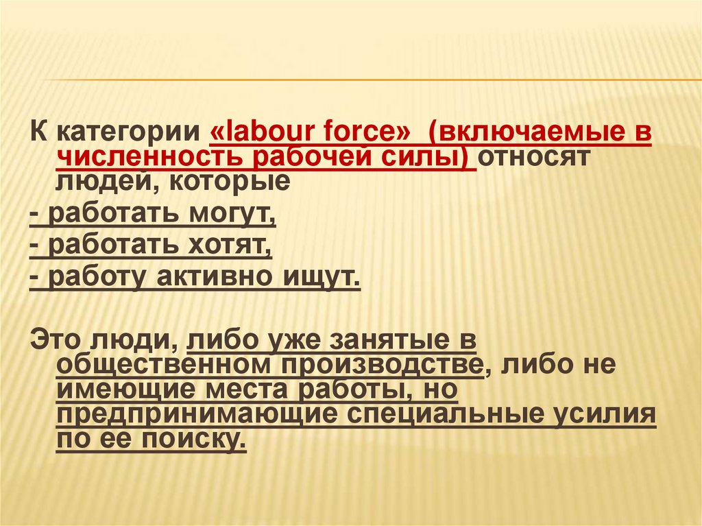К категории «labour force» (включаемые вчисленность рабочей силы) относят