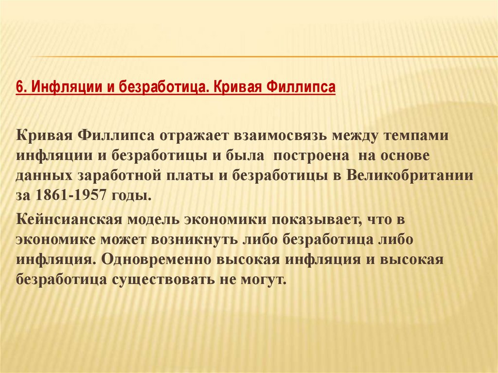 6. Инфляции и безработица. Кривая ФиллипсаКривая Филлипса отражает взаимосвязь между темпами