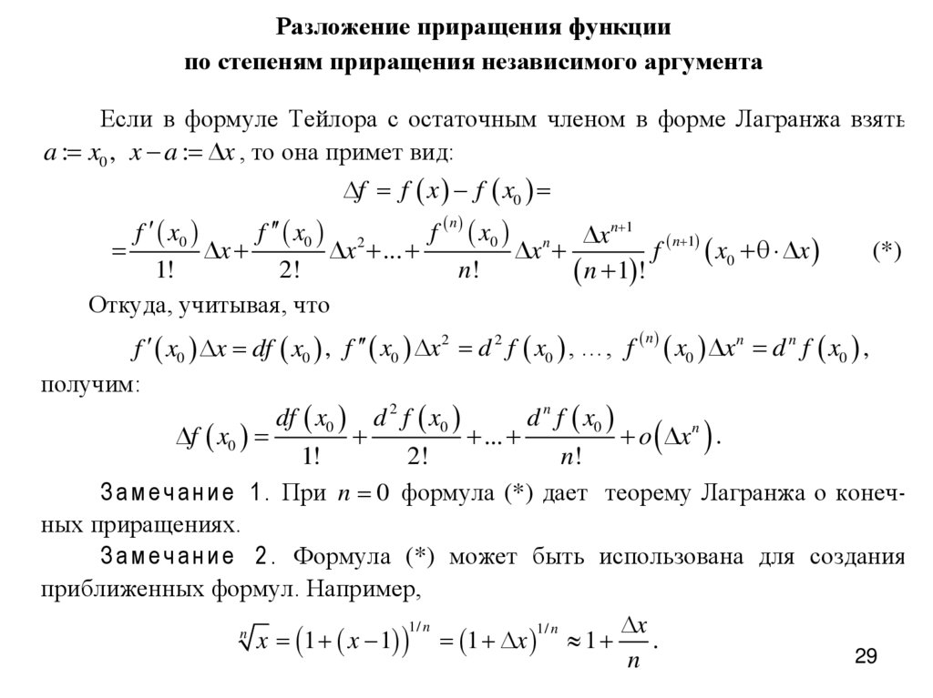 Следствие (теорема Лагранжа, или формула конечных приращений).