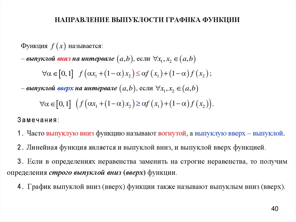 1 . Часто выпуклую вниз функцию называют вогнутой, а выпуклую вверх – выпуклой.