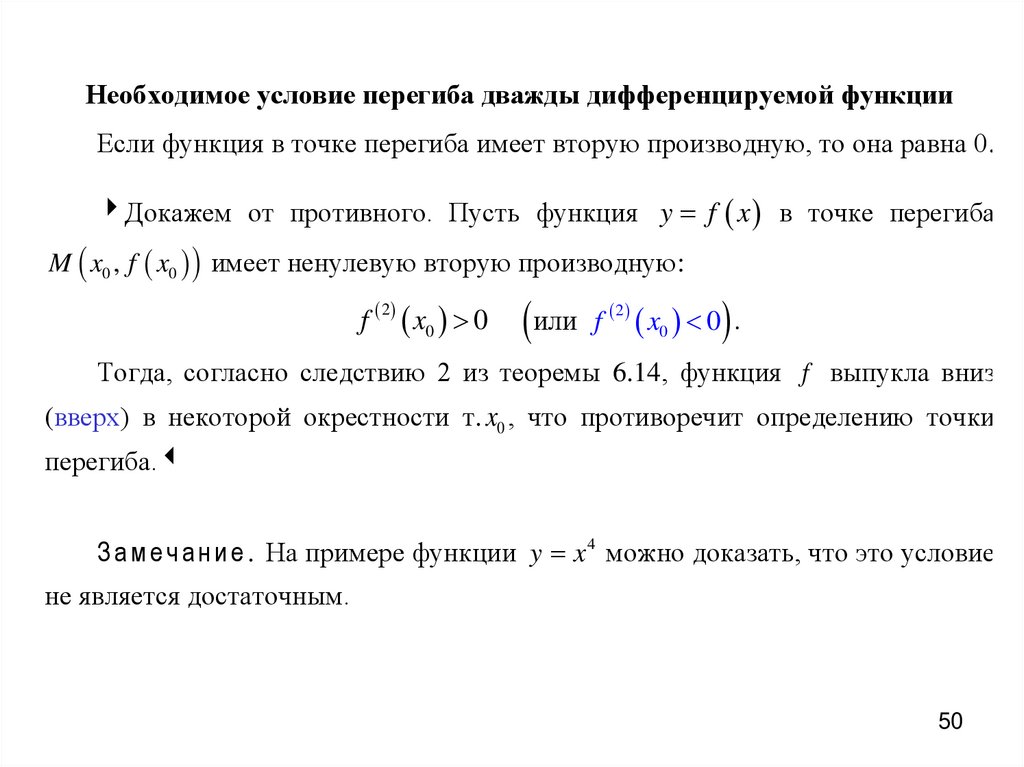 З а м е ч а н и е . На примере функции y x 4 можно доказать, что это условие
