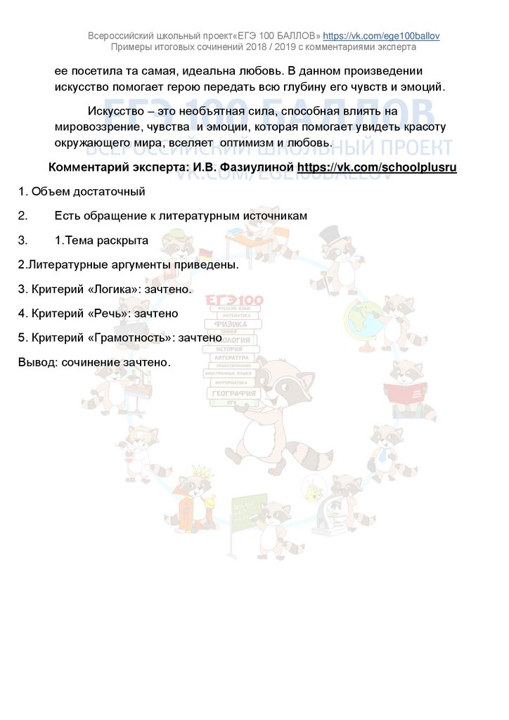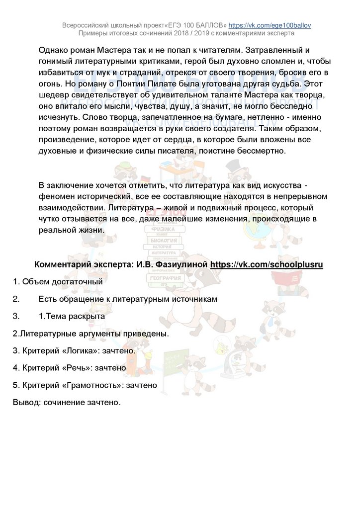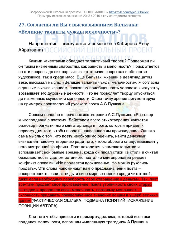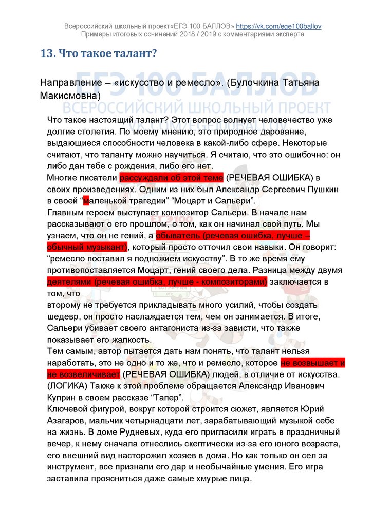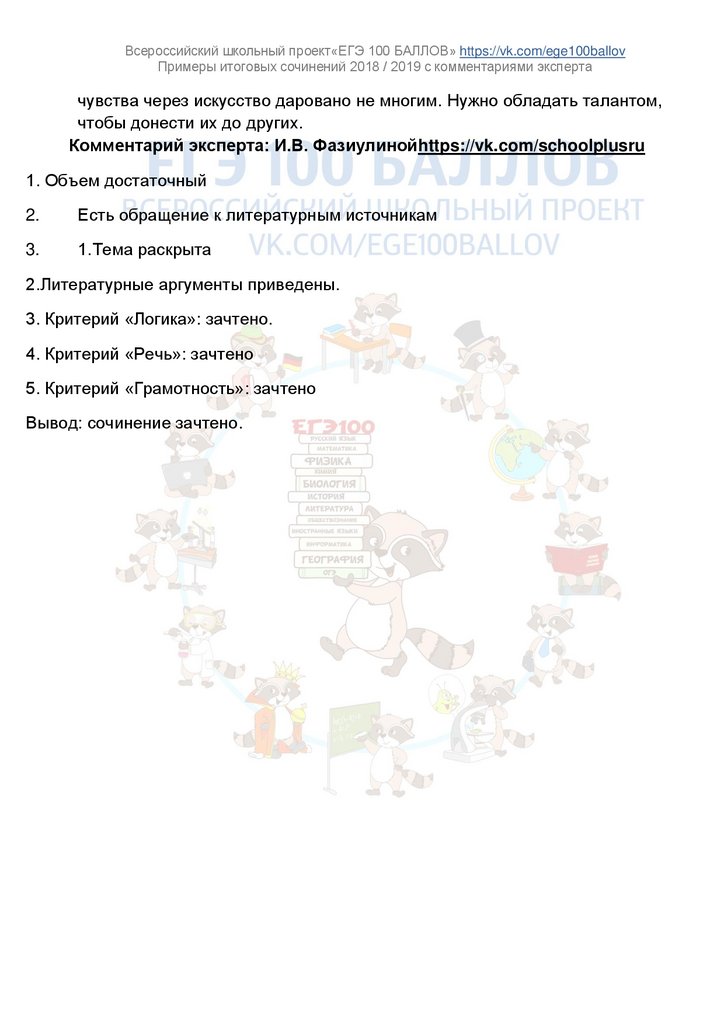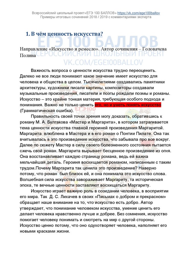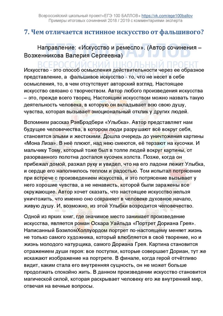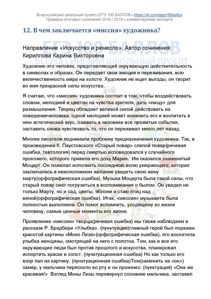 Всероссийский школьный проект«ЕГЭ 100 БАЛЛОВ» https://vk.com/ege100ballovПримеры итоговых сочинений 2018 / 2019 с комментариями эксперта