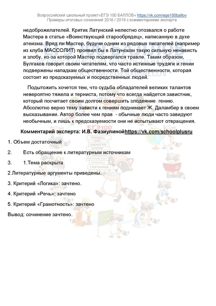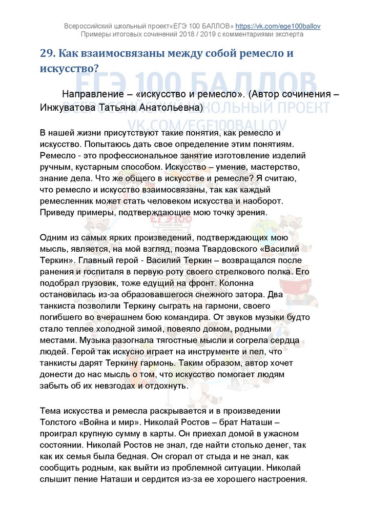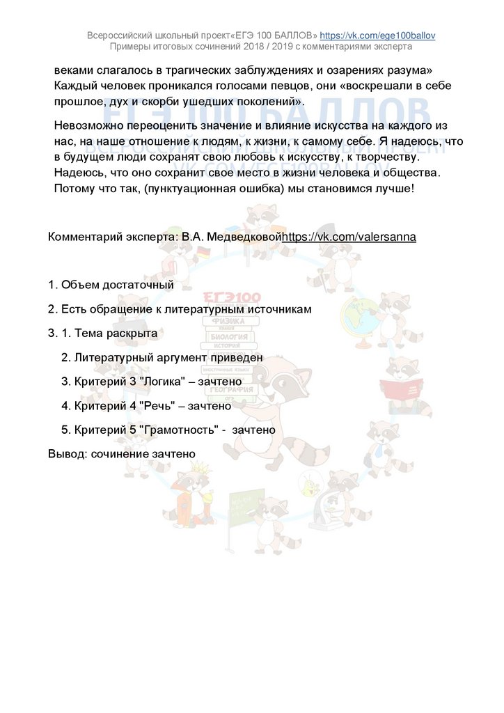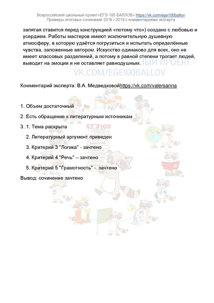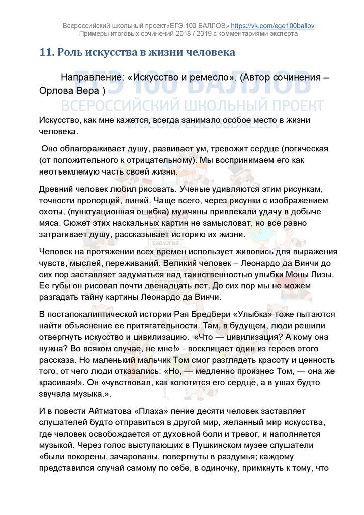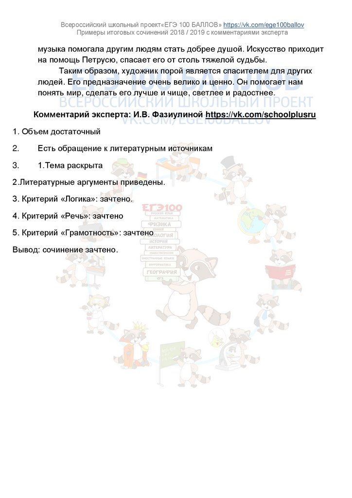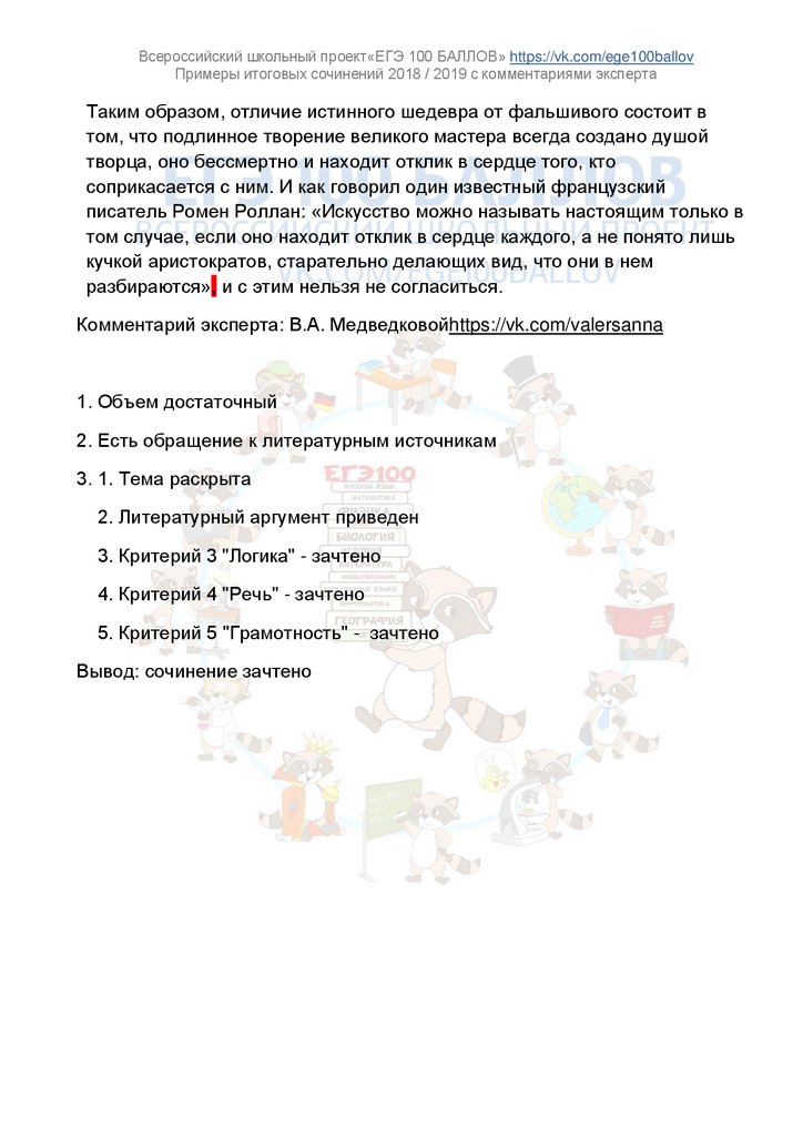 Всероссийский школьный проект«ЕГЭ 100 БАЛЛОВ» https://vk.com/ege100ballovПримеры итоговых сочинений 2018 / 2019 с комментариями эксперта