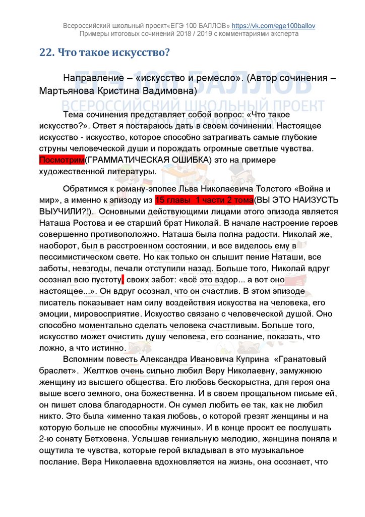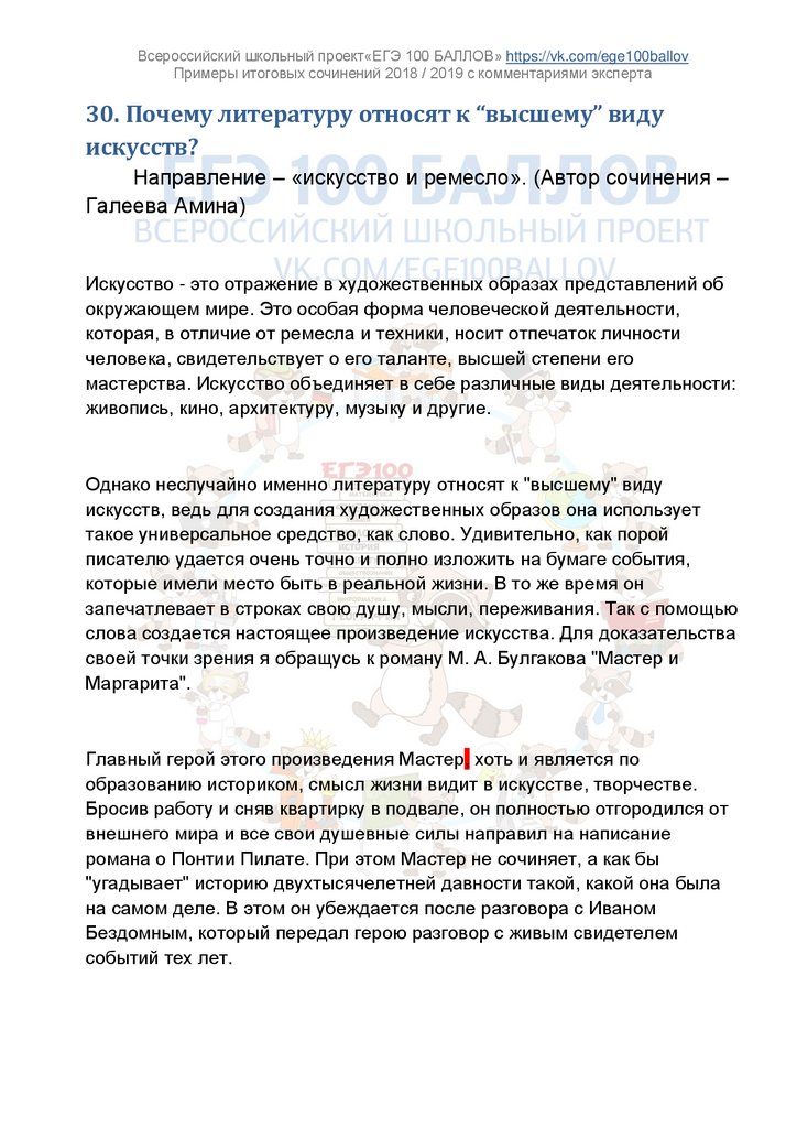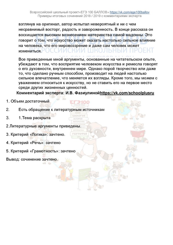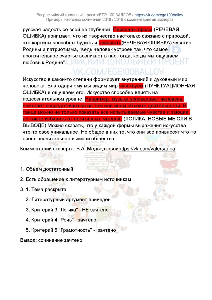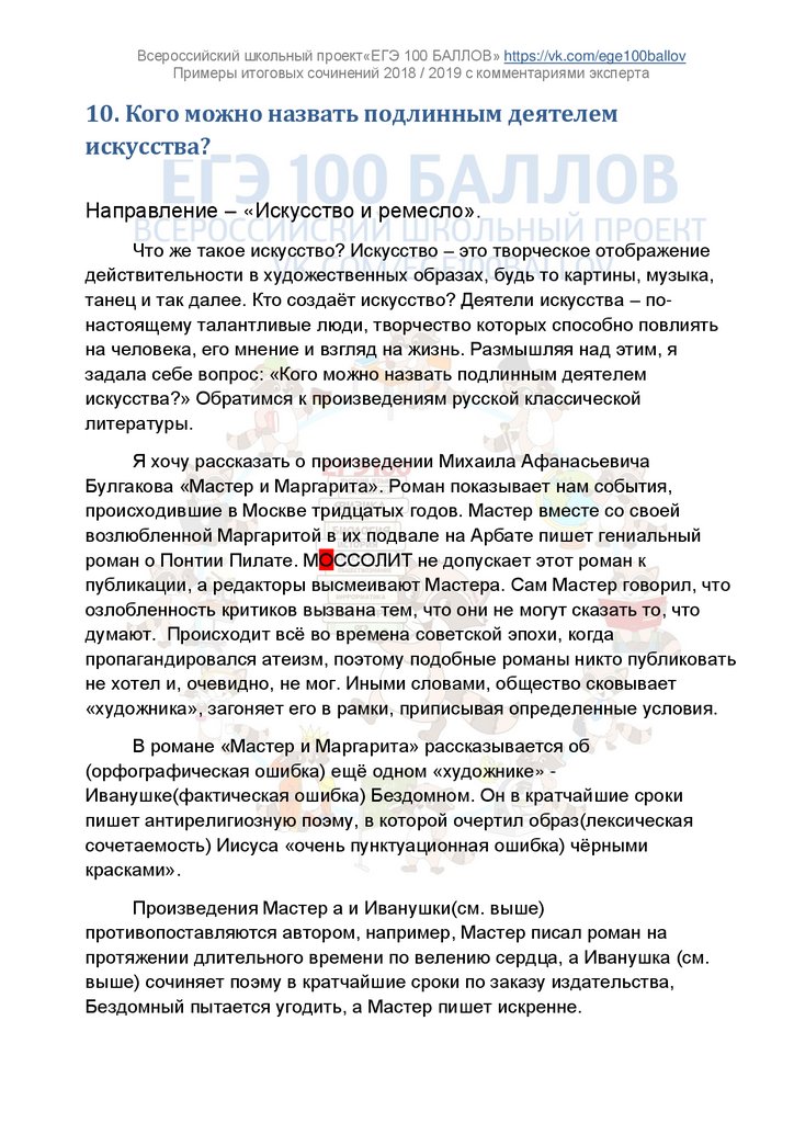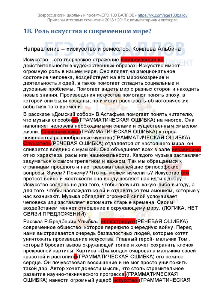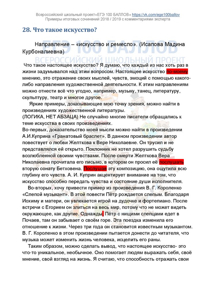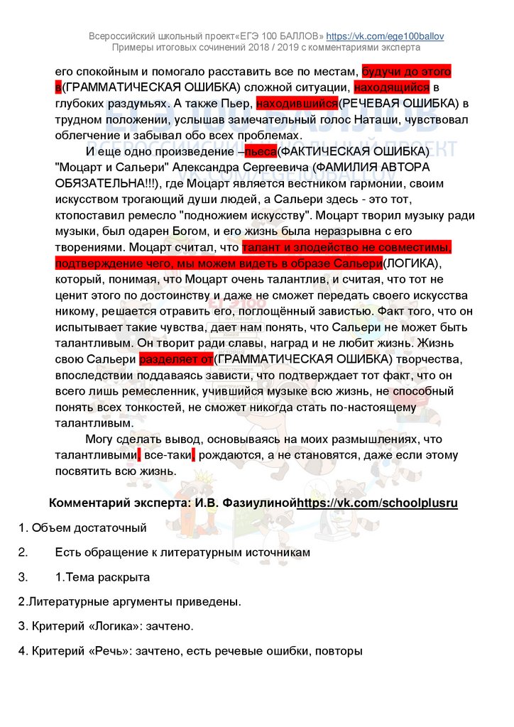 Всероссийский школьный проект«ЕГЭ 100 БАЛЛОВ» https://vk.com/ege100ballovПримеры итоговых сочинений 2018 / 2019 с комментариями эксперта