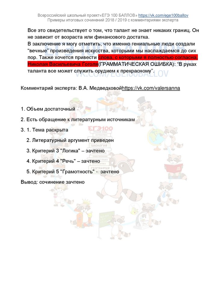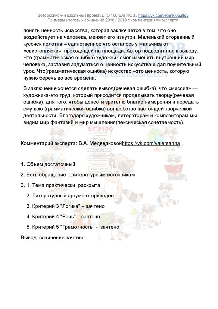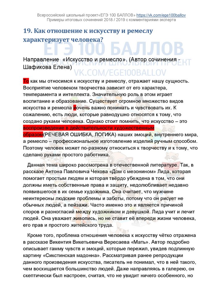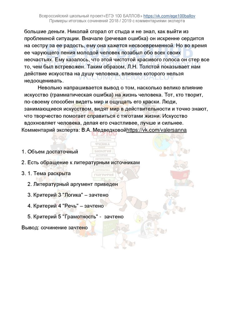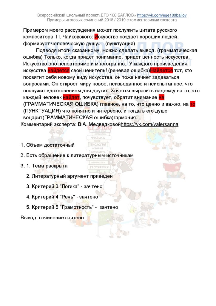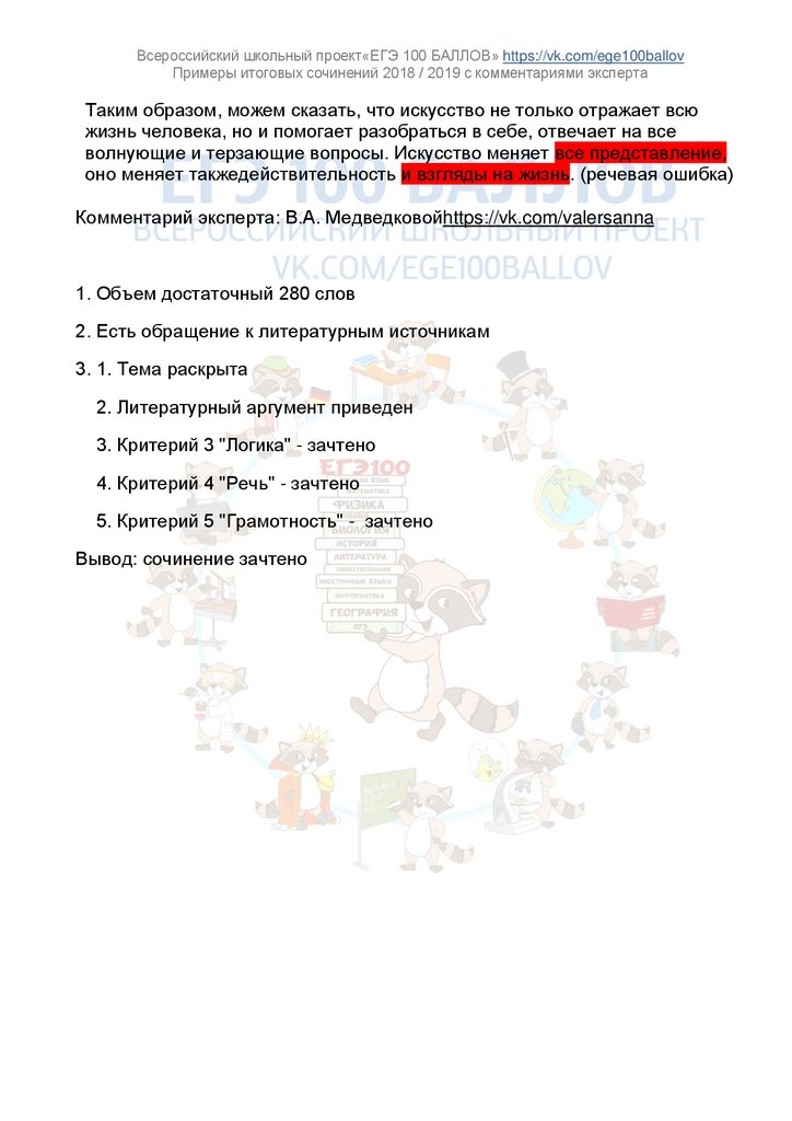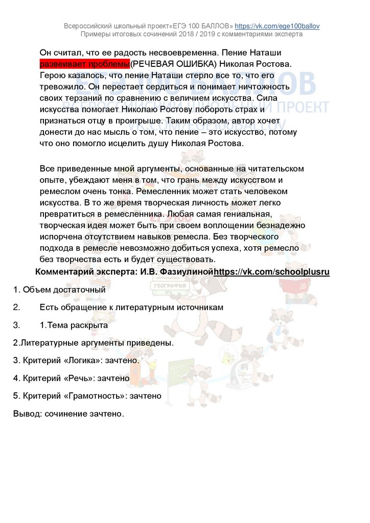 Всероссийский школьный проект«ЕГЭ 100 БАЛЛОВ» https://vk.com/ege100ballovПримеры итоговых сочинений 2018 / 2019 с комментариями эксперта