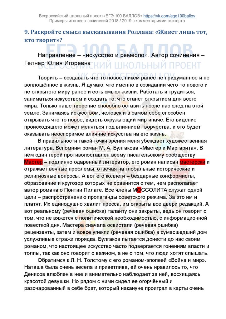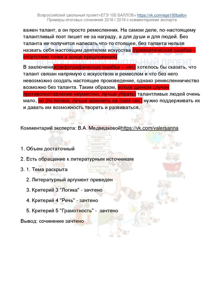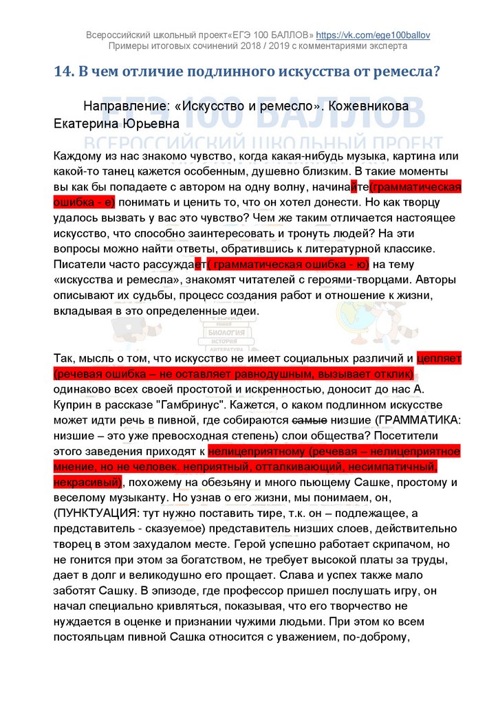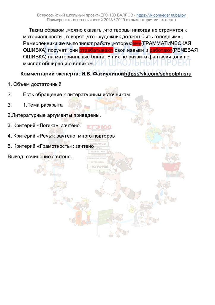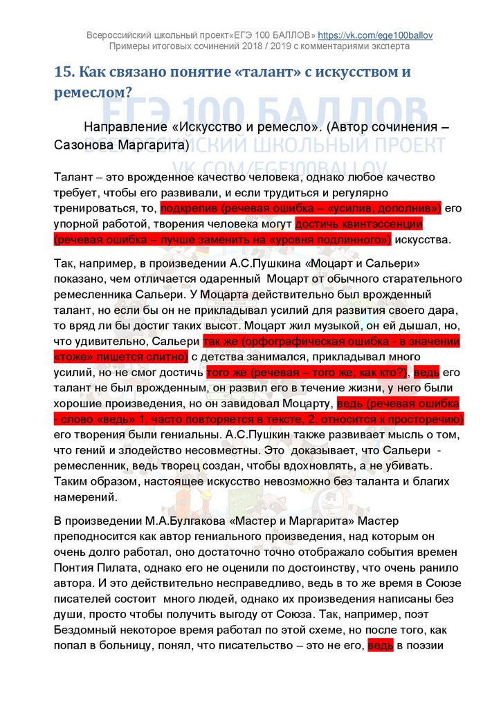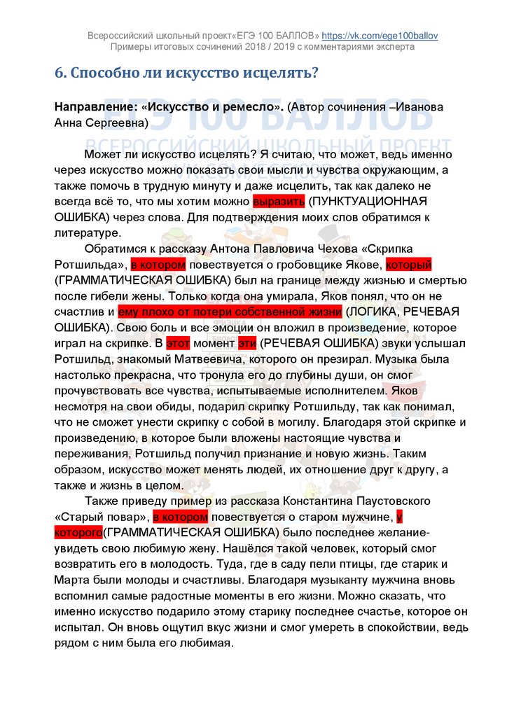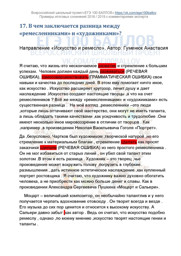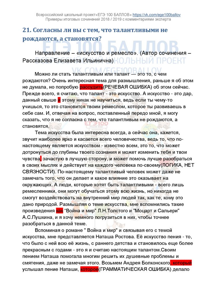 Всероссийский школьный проект«ЕГЭ 100 БАЛЛОВ» https://vk.com/ege100ballovПримеры итоговых сочинений 2018 / 2019 с комментариями эксперта