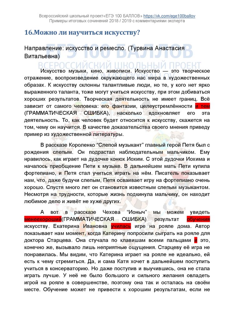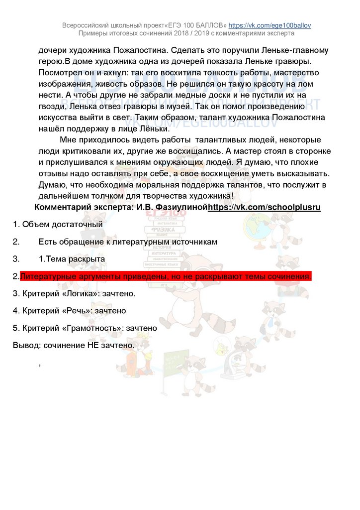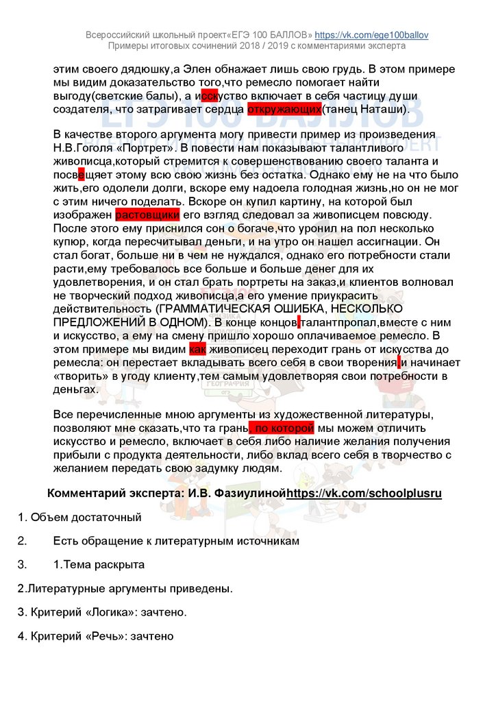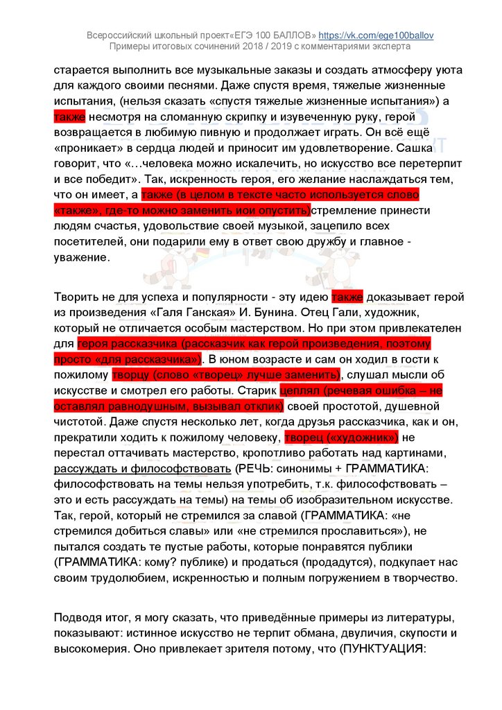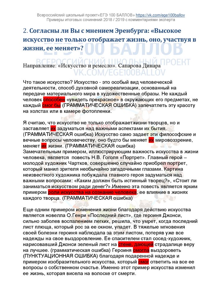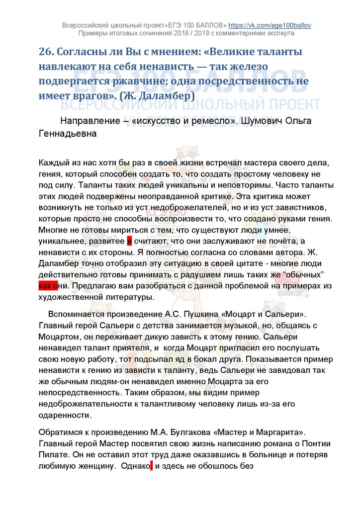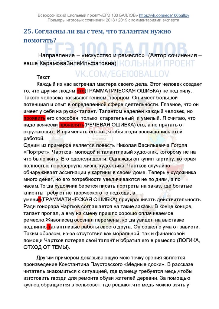 Всероссийский школьный проект«ЕГЭ 100 БАЛЛОВ» https://vk.com/ege100ballovПримеры итоговых сочинений 2018 / 2019 с комментариями эксперта