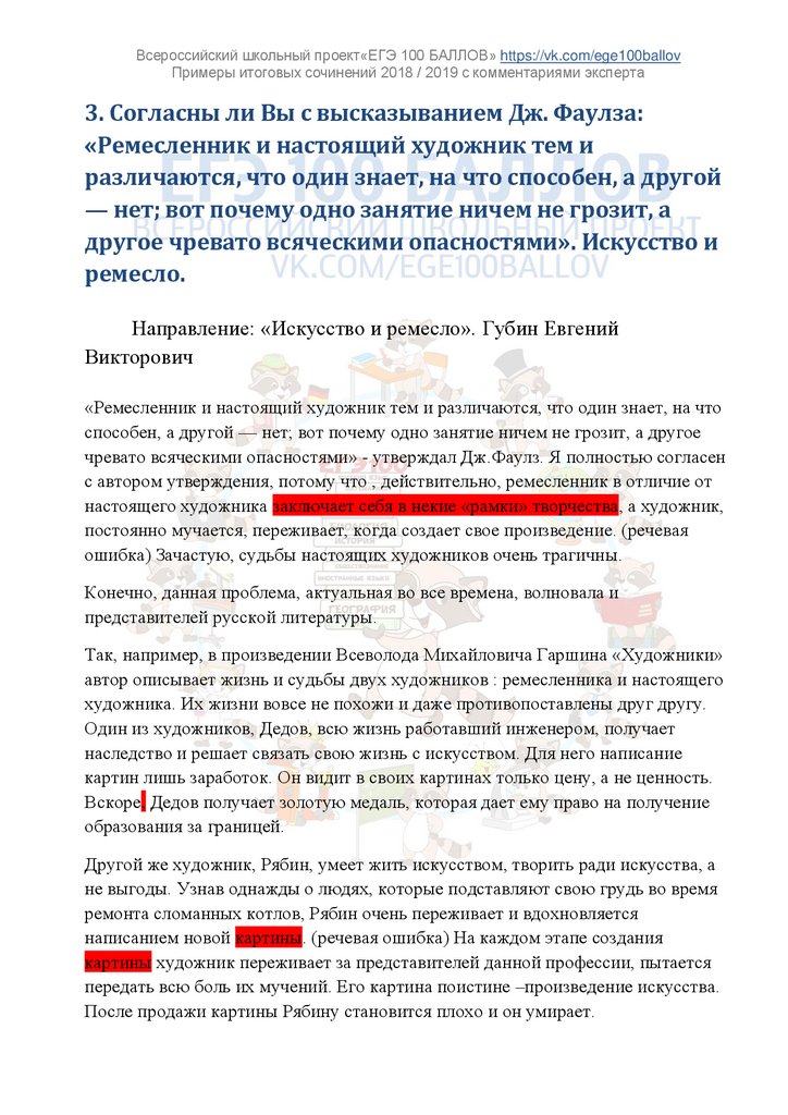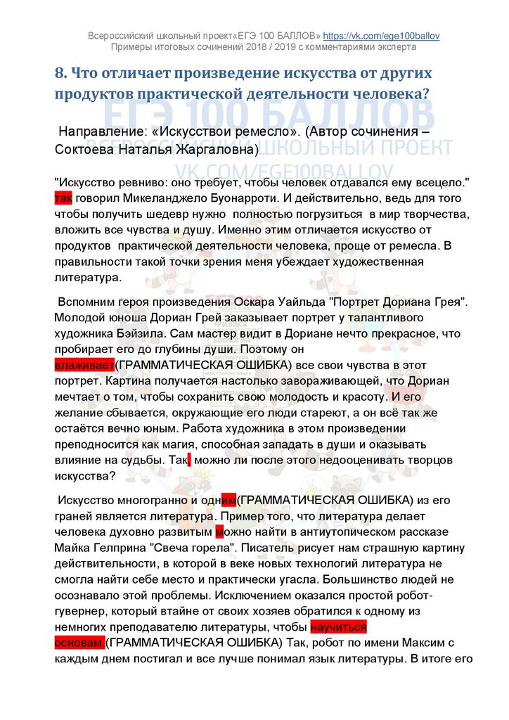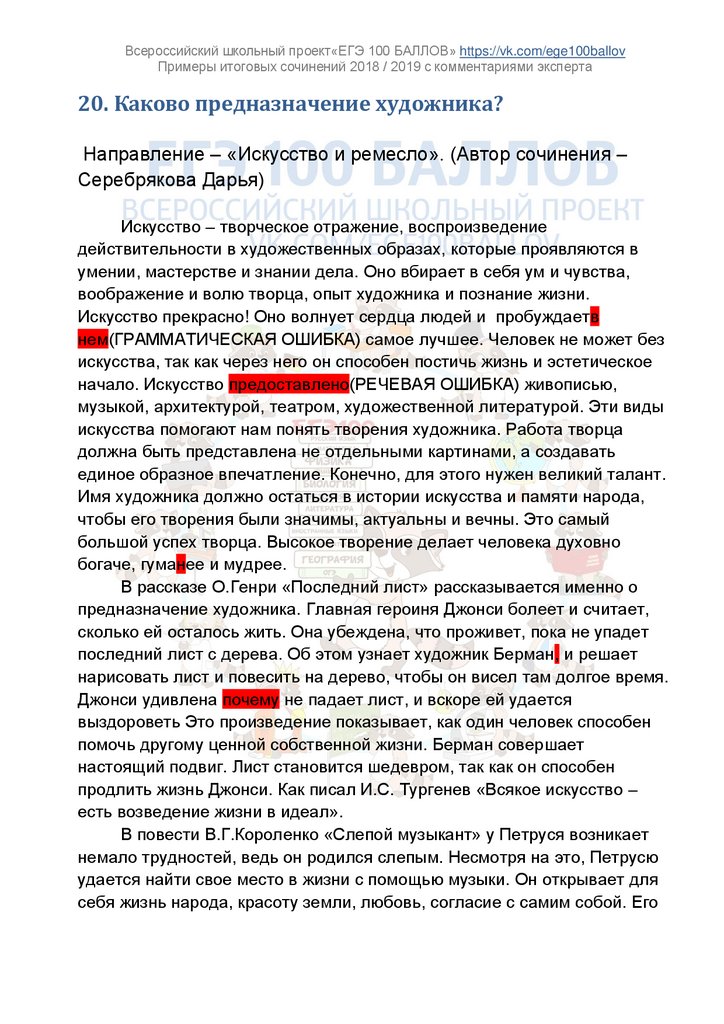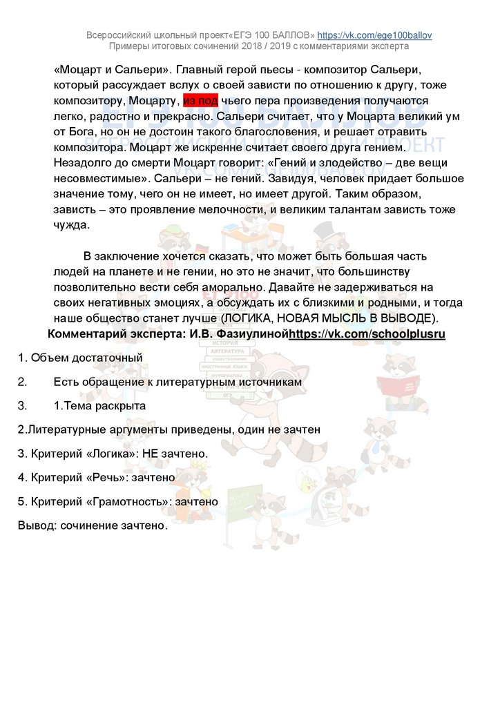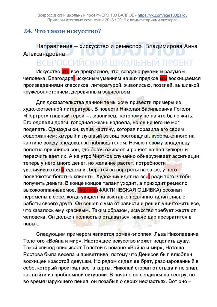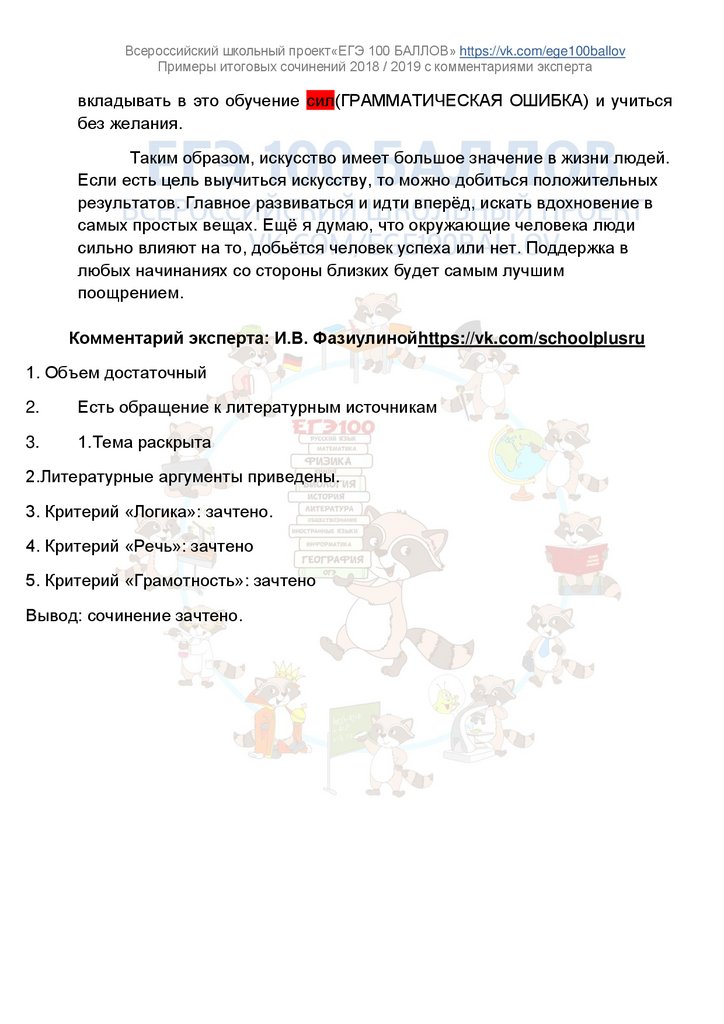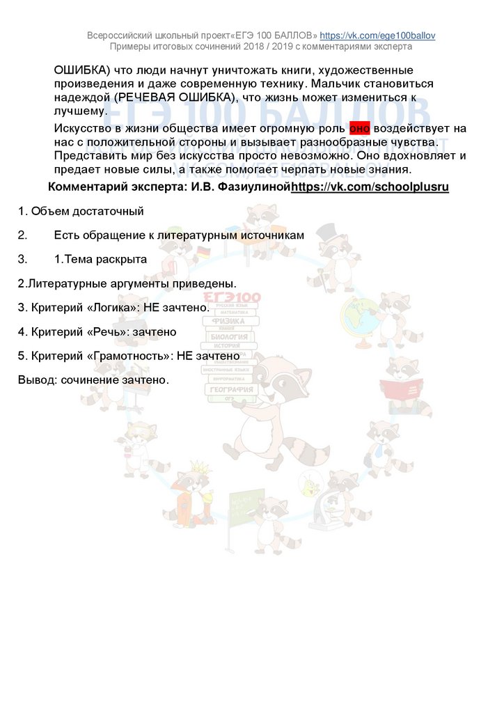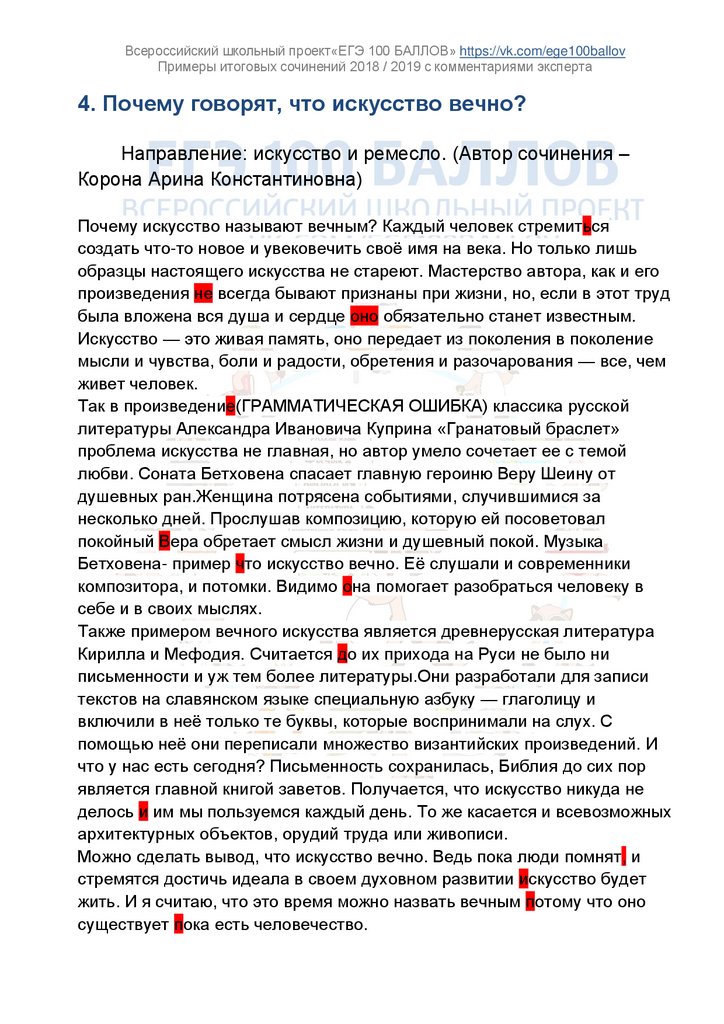Всероссийский школьный проект«ЕГЭ 100 БАЛЛОВ» https://vk.com/ege100ballovПримеры итоговых сочинений 2018 / 2019 с комментариями эксперта