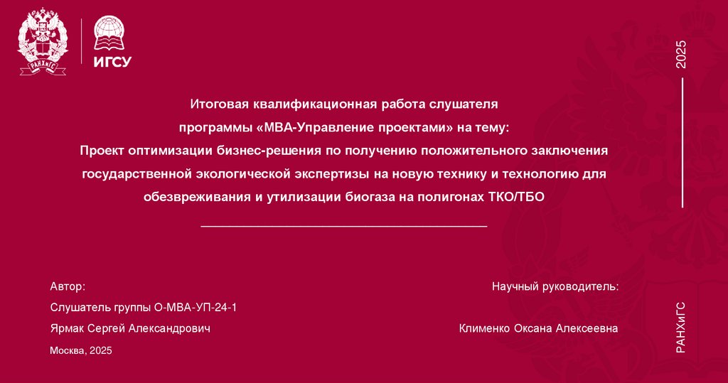 1. Итоговая квалификационная работа слушателя программы «МВА-Управление проектами» на тему: Проект оптимизации бизнес-решения по
