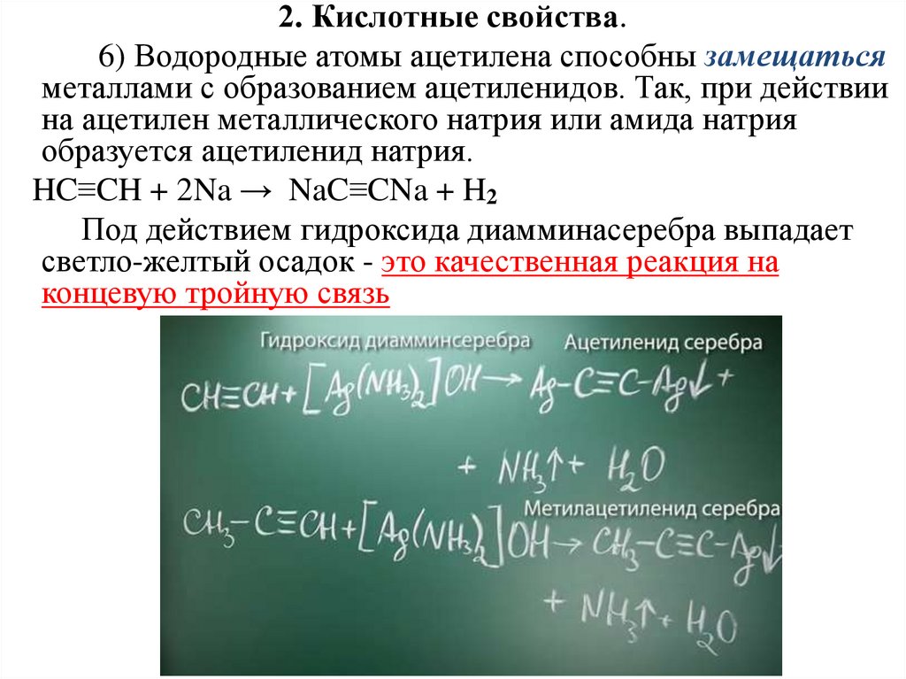 2. Кислотные свойства.6) Водородные атомы ацетилена способны замещаться