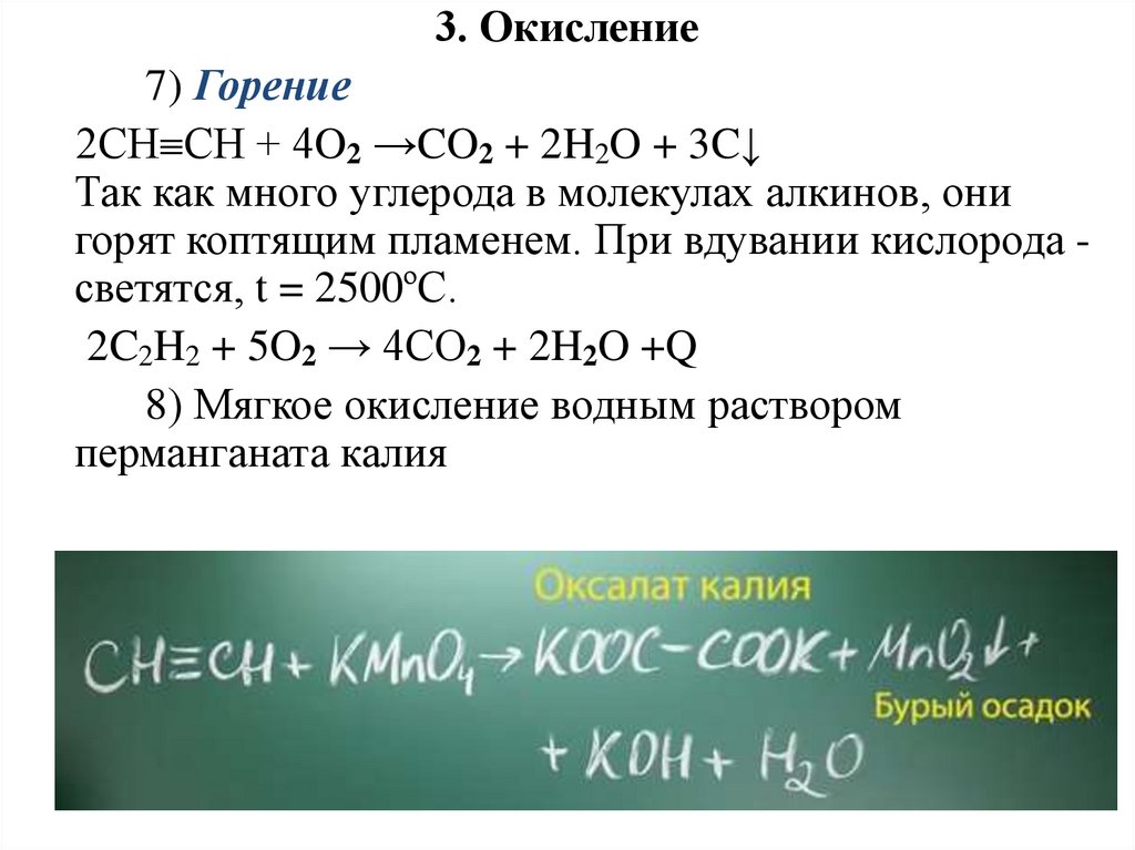 2СН СН + 4O2 →CO2 + 2H2O + 3C↓