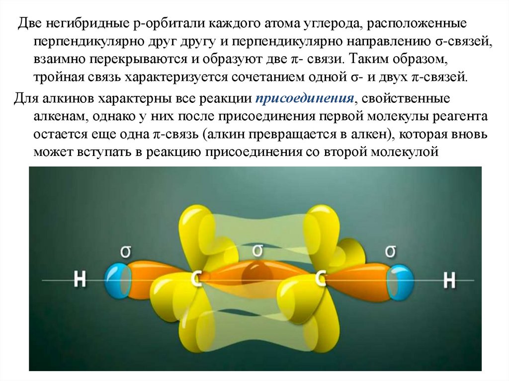 тройная связь характеризуется сочетанием одной σ- и двух π-связей.