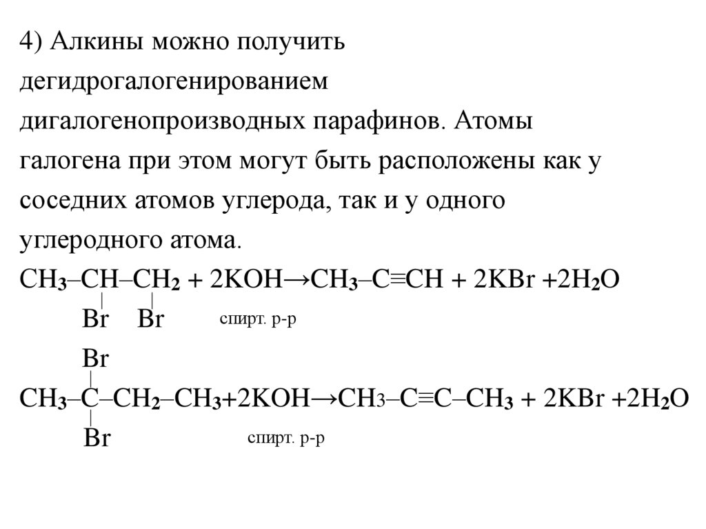 СH3–CH–CH2 + 2KOH→CH3–C≡CH + 2KBr +2H2O