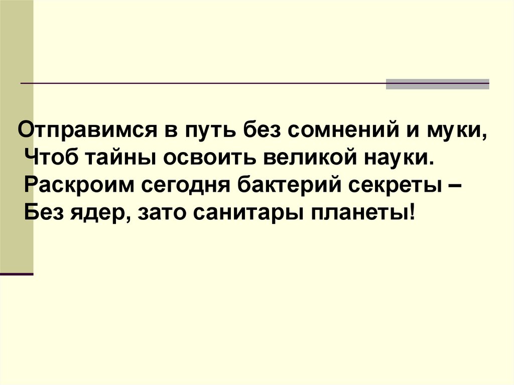Раскроим сегодня бактерий секреты –