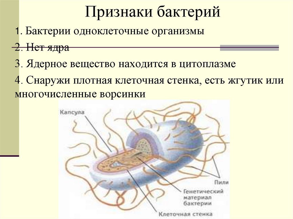 Признаки бактерий1. Бактерии одноклеточные организмы