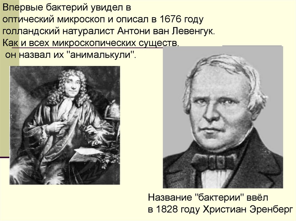 Впервые бактерий увидел воптический микроскоп и описал в 1676 году