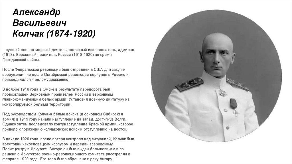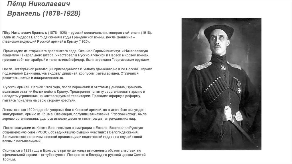 Один из лидеров Белого движения в годы Гражданской войны, после Деникина –