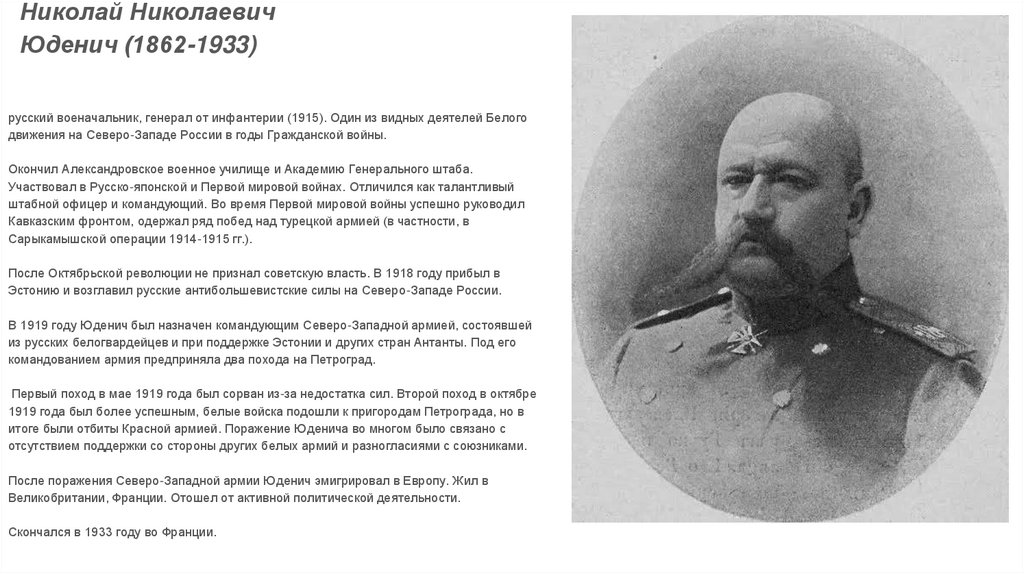 В 1919 году Юденич был назначен командующим Северо-Западной армией, состоявшей