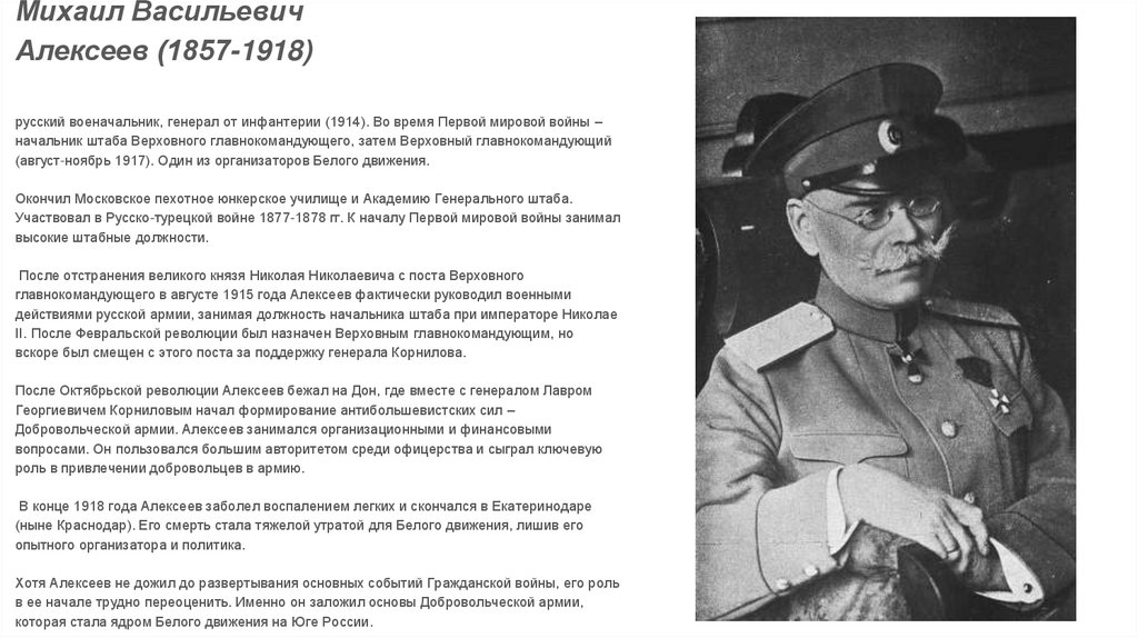 Добровольческой армии. Алексеев занимался организационными и финансовыми