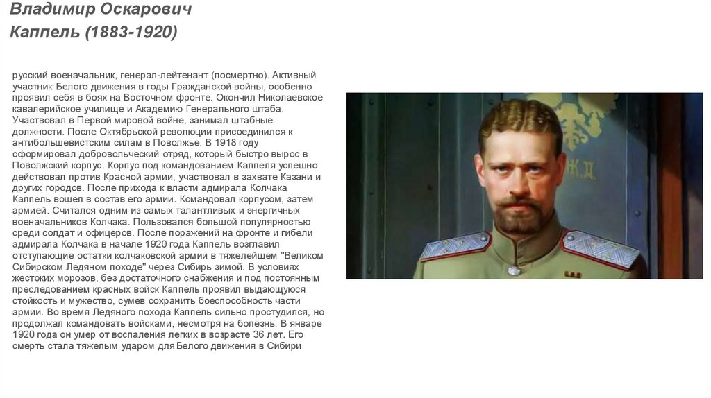 адмирала Колчака в начале 1920 года Каппель возглавил