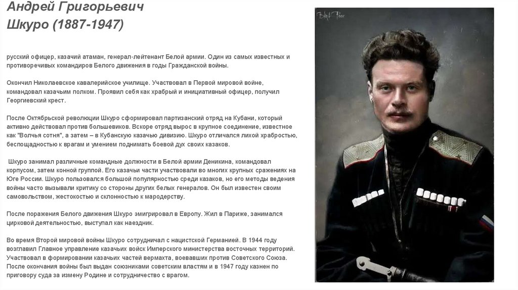 противоречивых командиров Белого движения в годы Гражданской войны.