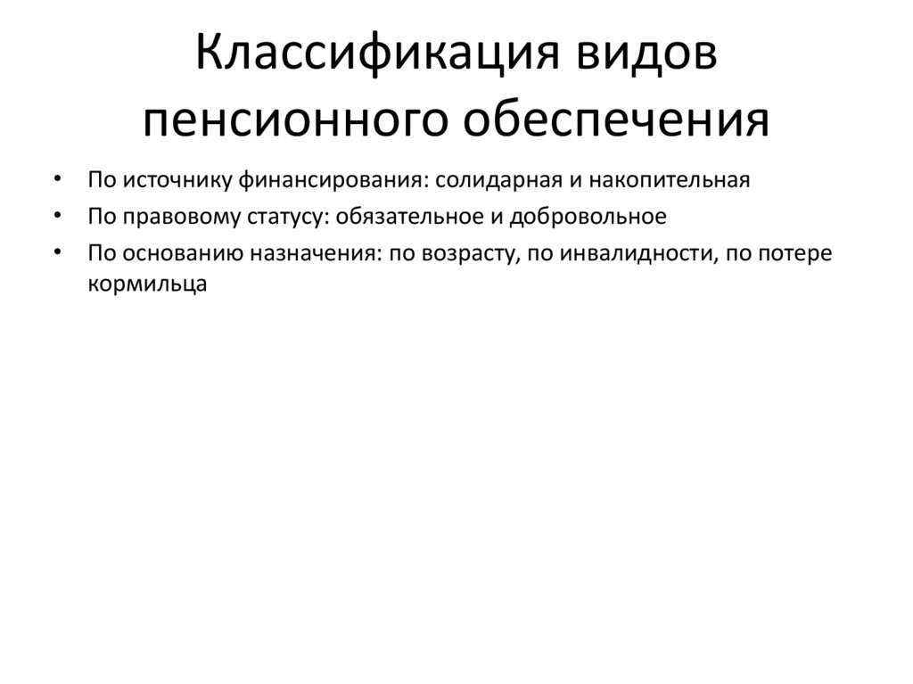Классификация видовпенсионного обеспечения