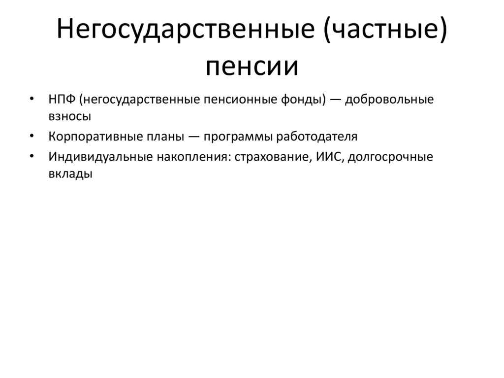 • НПФ (негосударственные пенсионные фонды) — добровольные
