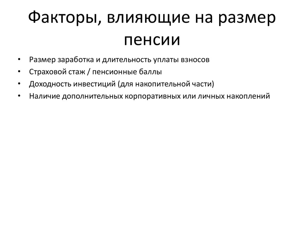 Факторы, влияющие на размерпенсии