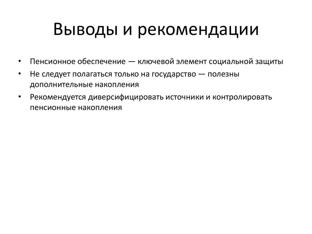 Выводы и рекомендации• Пенсионное обеспечение — ключевой элемент социальной защиты