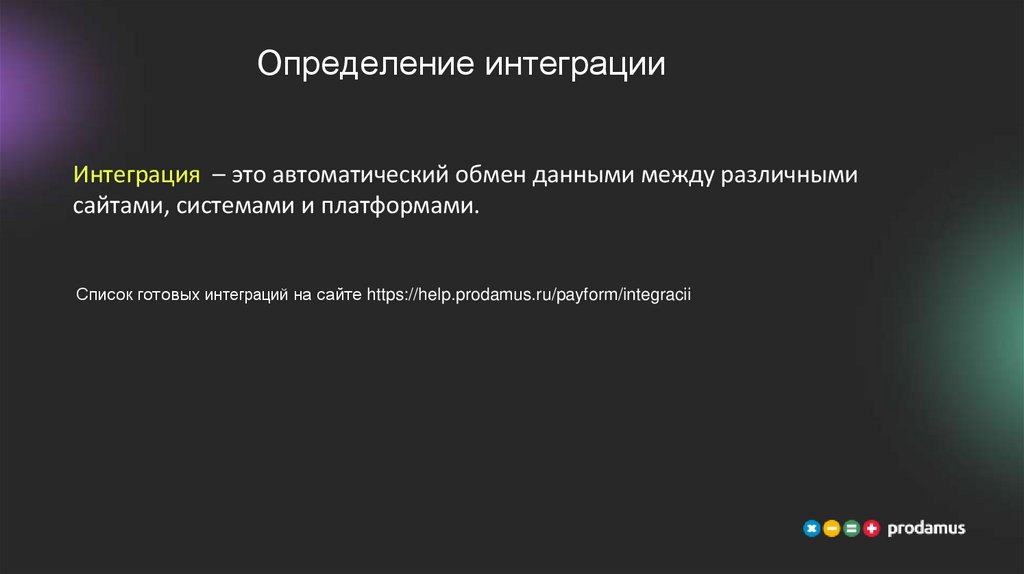 Определение интеграцииИнтеграция – это автоматический обмен данными между различными