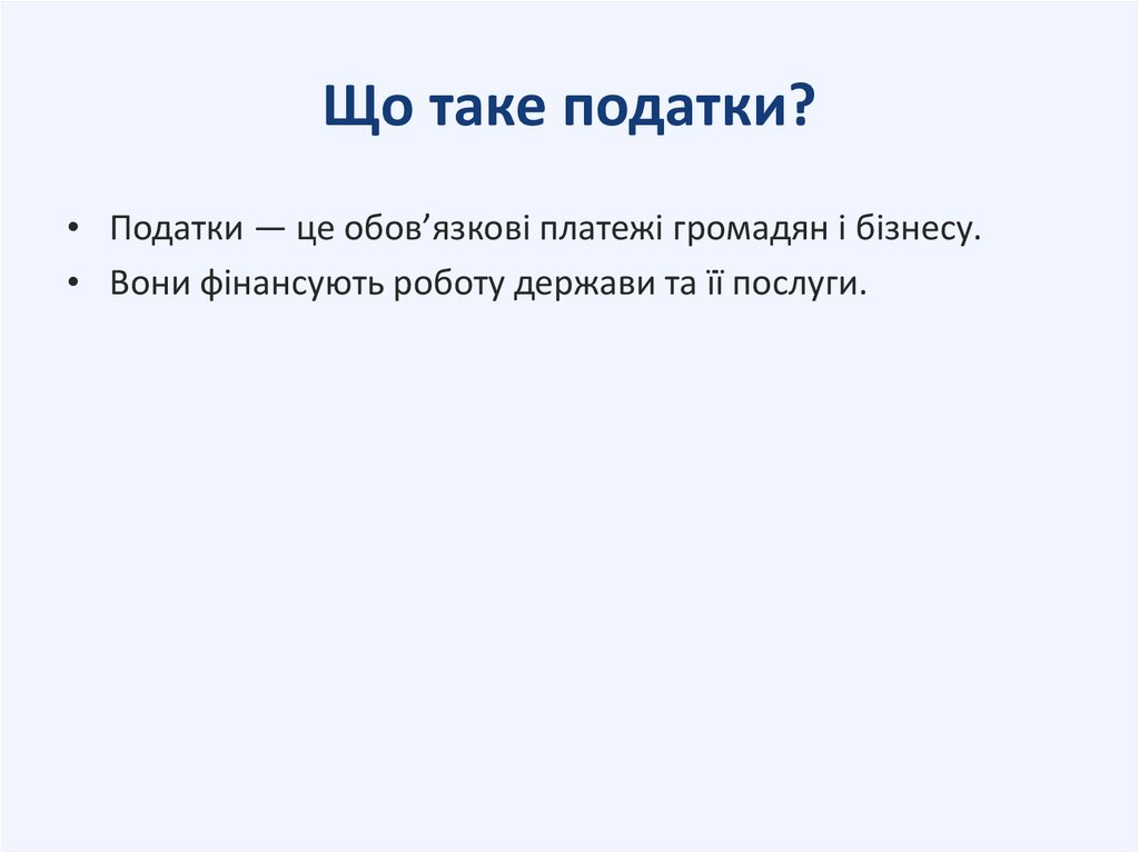 Що таке податки?• Податки — це обов’язкові платежі громадян і бізнесу.