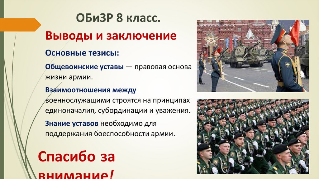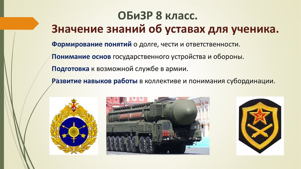 ОБиЗР 8 класс.Значение знаний об уставах для ученика.