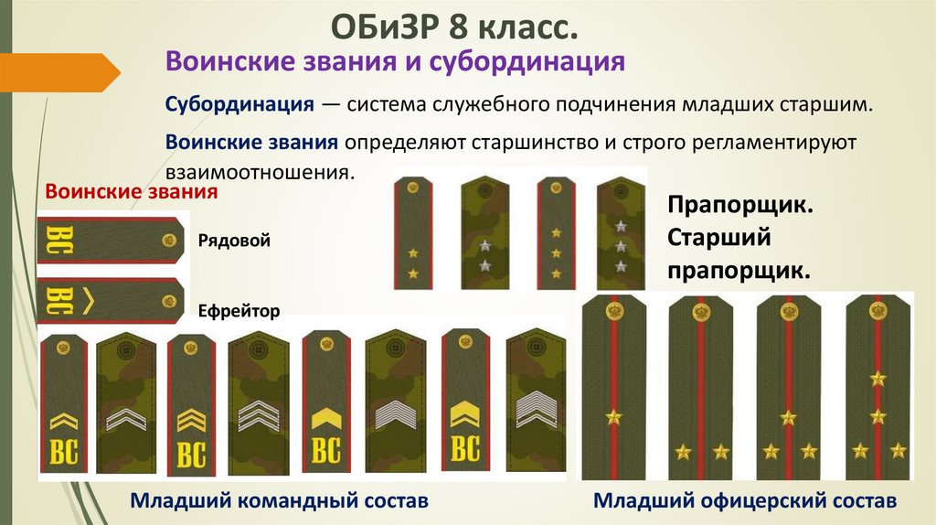 ОБиЗР (Основа безопасности и защиты Родины) 8 класс.Военнослужащие и взаимоотношения между ними.