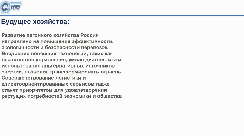 Будущее хозяйства:Развитие вагоннoго хозяйства России