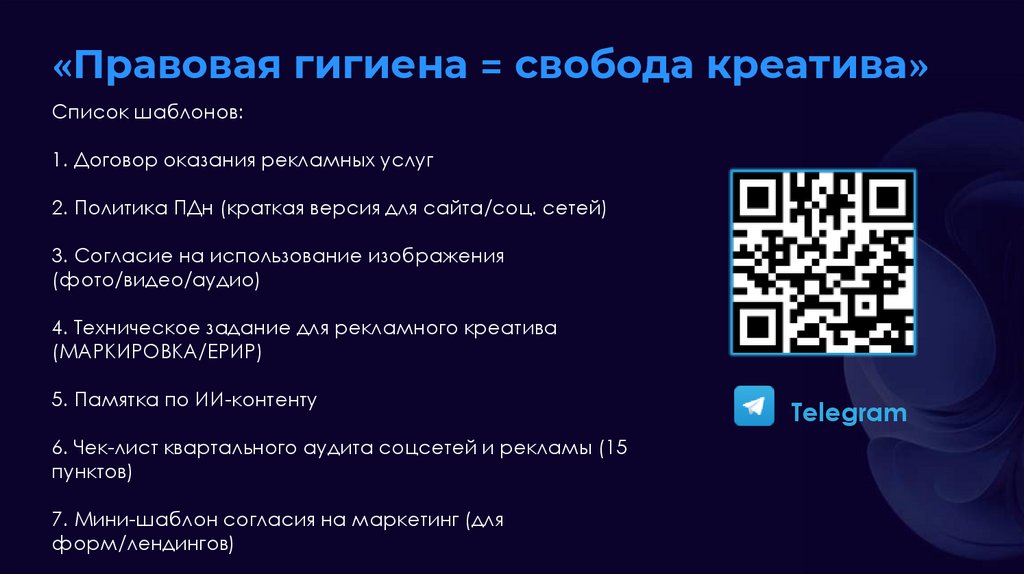 «Правовая гигиена = свобода креатива»Список шаблонов: