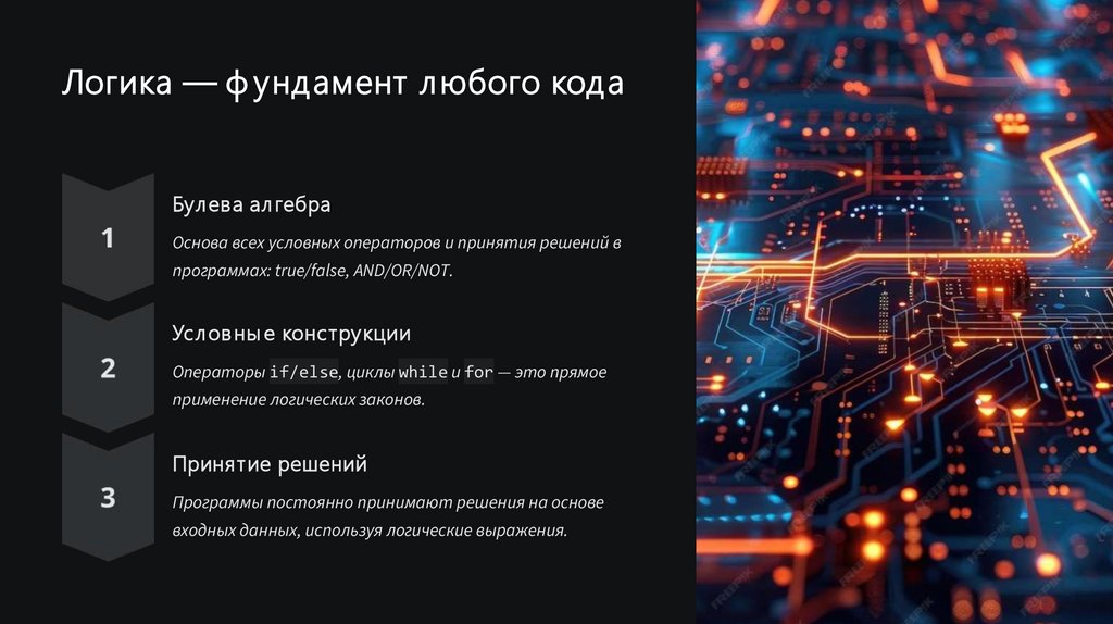 Логика — ф ундамент любого кодаБул ева ал гебра