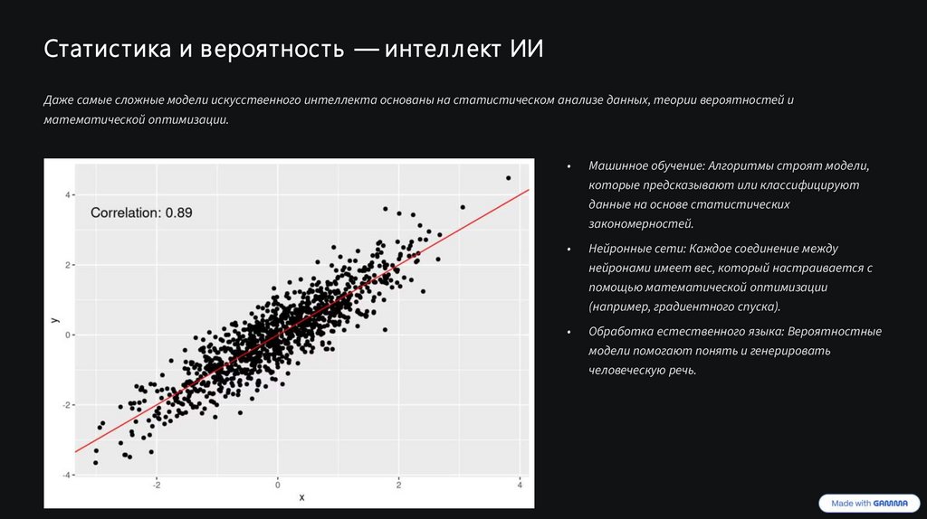 Статистика и вероятность — интел лект ИИДаже самые сложные модели искусственного интеллекта основаны на статистическом анализе данных, теории вероятностей и